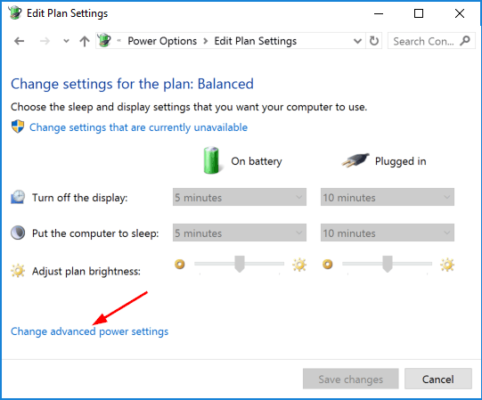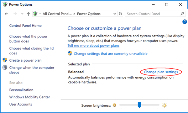 - Click the Change plan settings link next to the power plan that is currently selected for your laptop or tablet.