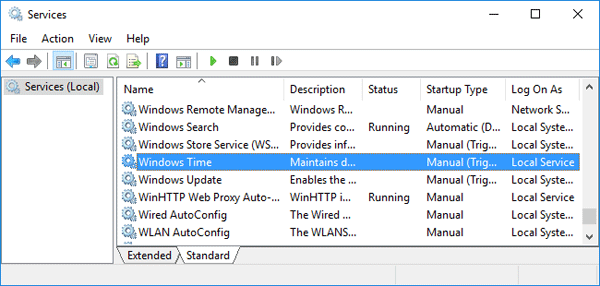 6. From the service list, find the service named Windows Time and then double-click on it.