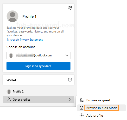 2. Choose “Browse in Kids Mode” from the drop-down list.