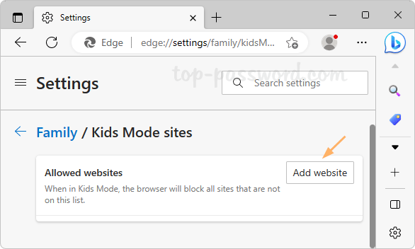 Repeat this to add more websites to the list. Note that Kids Mode blocks all websites that are not on this list.