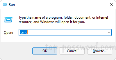 Press the Windows key + R together on your keyboard to open the Run dialog box. Type cmd and press ENTER to launch a regular Command Prompt window.