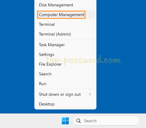 1. Right-click the Start button on the taskbar, and then choose Computer Management from the pop-up menu.