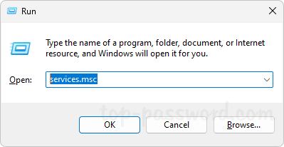 1. Press the Windows key + R together to launch the Run dialog box, type services.msc in the text field and press Enter.