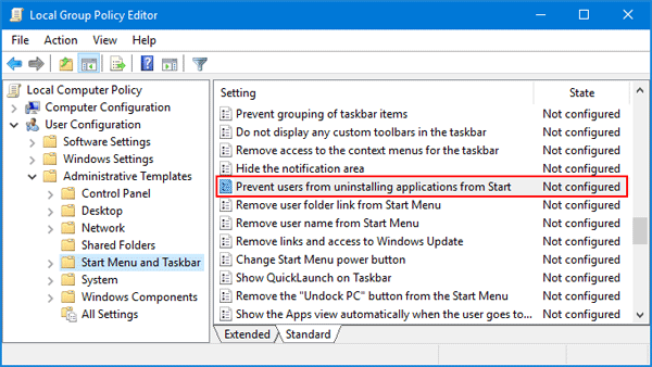 Method 1: Prevent Uninstalling Apps from Windows 10 Start Menu Using Group Policy