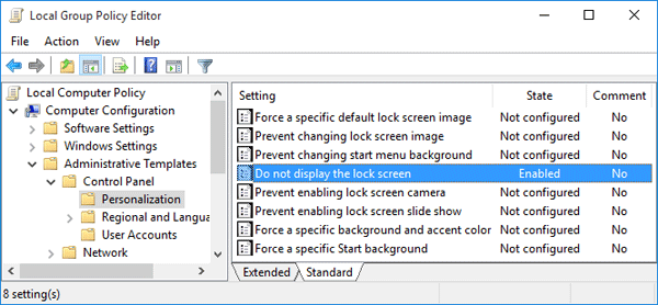 Method 1: Disable Windows 8 or 10 Lock Screen Using Group Policy