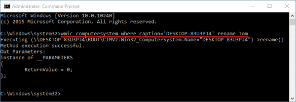- In the Command Prompt, you can use the WMIC computersystem command to change your computer name easily, assuming you know the current computer name.