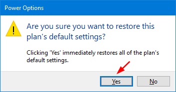 5. Now you’ve restored the current power plan to default settings.