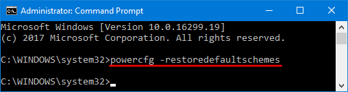 powercfg –restoredefaultschemes