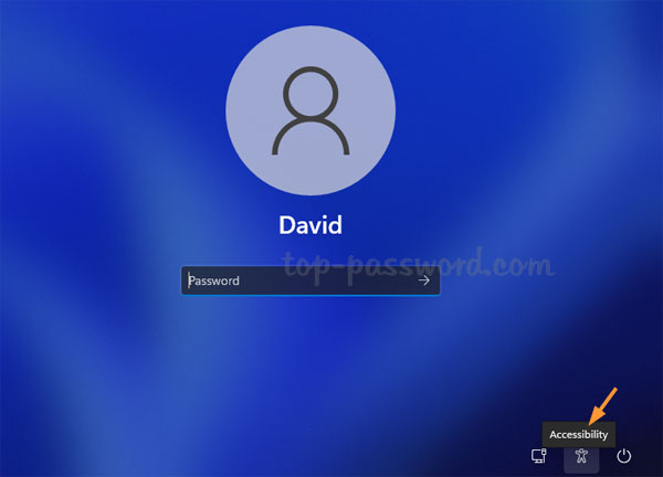 6. After you get to the Windows login screen, click the Accessibility icon in the lower-right corner. It will launch Command Prompt.