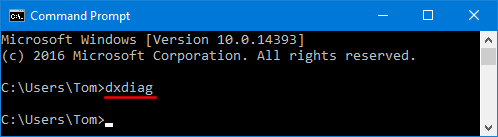 Open the Command Prompt in Windows 10, type dxdiag and press Enter. This will also launch DirectX Diagnostic Tool.