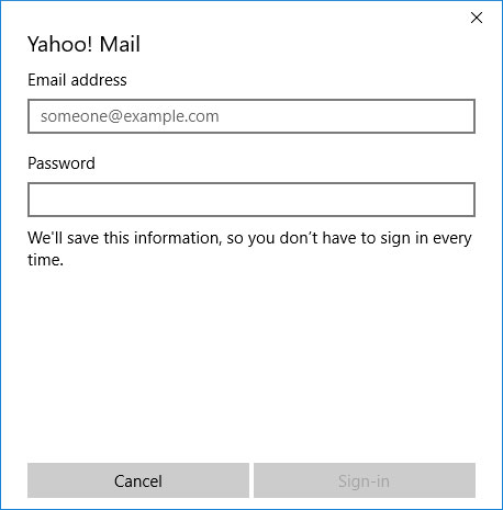 5. Simply enter your email address and password if prompted. Click Sign-in. This sign-in procedure is different based on the type of email account you chose in the previous step.