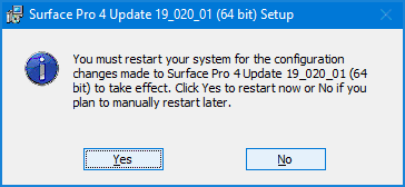 5. When you’re prompted to restart your Surface device to finish installing the driver updates, click Yes.