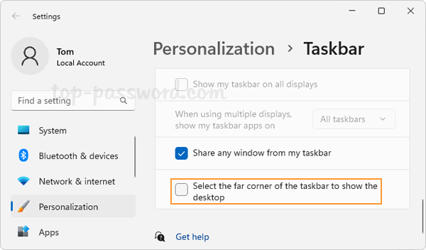 Method 1: Turn off Show Desktop Button in Windows 11 via Settings App