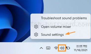 - Right-click on the sound icon in the bottom-right corner of your taskbar, and then choose “Sound settings” from the pop-up menu.