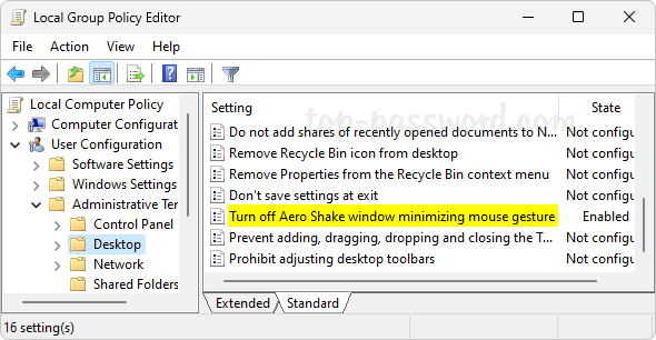 If you’ve enabled the “Title bar window shake” feature but it still doesn’t work, it’s possible that the group policy “Turn off Aero Shake window minimizing mouse gesture” is activated. Just follow these steps to disable the group policy: