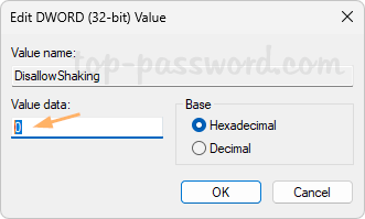 2. Set its value data to 0 for turning on title bar window shake, or set it to 1 if you want to turn off that feature.