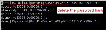 Alternatively, you can just remove the hash altogether (everything between the first and the second colon) and login to the service console as root with no password at all.