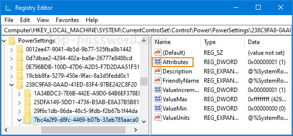 HKEY_LOCAL_MACHINE\SYSTEM\CurrentControlSet\Control\Power\PowerSettings\238C9FA8-0AAD-41ED-83F4-97BE242C8F20\7bc4a2f9-d8fc-4469-b07b-33eb785aaca0