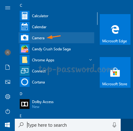 The following steps will demonstrate how to locate the built-in Camera app in Windows 10.