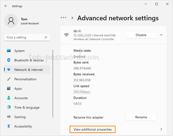 1. Press the Windows key + I to open the Settings app. Choose “Network & internet” from the sidebar. On the right side, click on “Advanced network settings“.