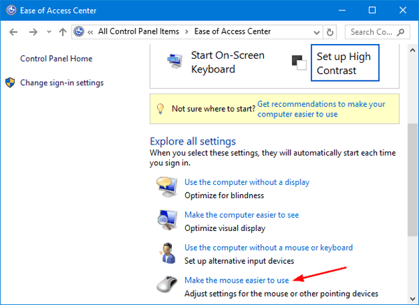 2. Under the “Explore all settings” section, click the “Make the mouse easier to use” link.