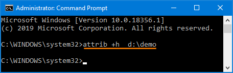 This command will assign the “Hidden” attribute to your target folder or file, and make it disappear from the File Explorer view.
