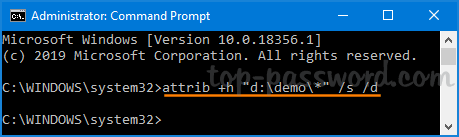 If you need to hide all files and subfolders in your target location (for exmaple, D:\demo), run this following command: