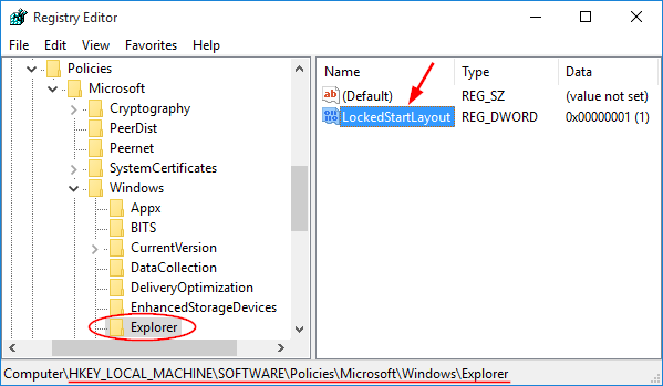 HKEY_LOCAL_MACHINE\Software\Policies\Microsoft\Windows\ExplorerIf you just want to lock the Start Menu layout for the currently logged on user, navigate to: