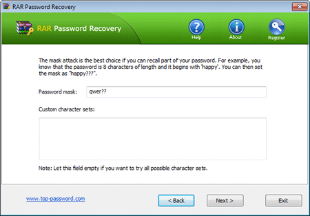 Often the Mask attack used if you already know some symbols or characters in the password. You can specify the mask to decrease the passwords combinations to be verified. For example, you know that the password contains 6 characters, starts with "qwer". So, the Password mask should be set to "qwer??".