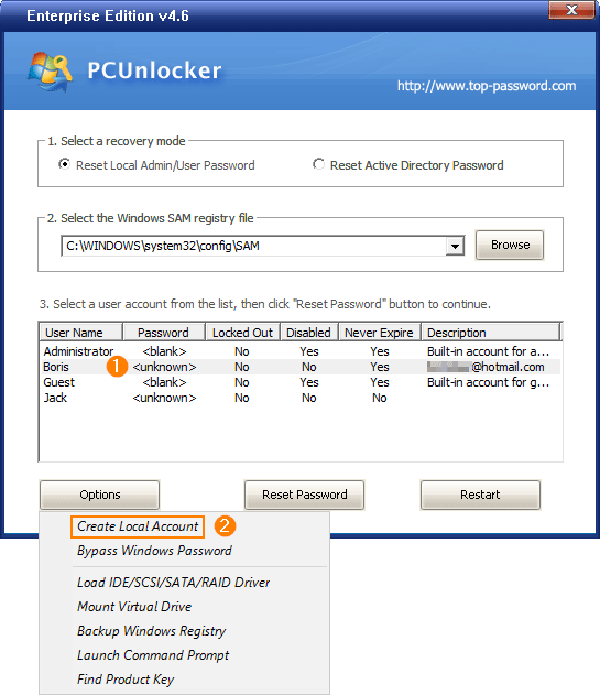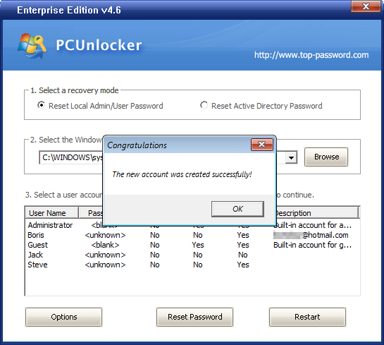 How to Create New Windows Admin Account with PCUnlocker