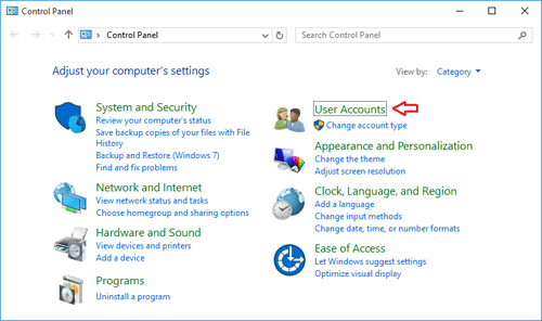 - Once inside the Control Panel, click "User Accounts".