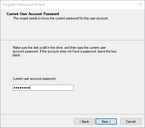 - Once the wizard finishes creating the password reset disk, click on Next.
