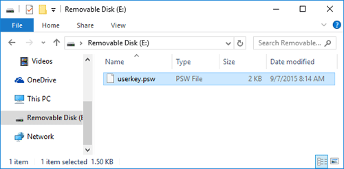 - On the next screen, click Finish to close the wizard. This password reset disk contains a single file named userkey.psw (about 2KB), which is an encrypted backup version of your password. Please label the media as Password Reset and then save it in a safe place in the event that you need it in the future.