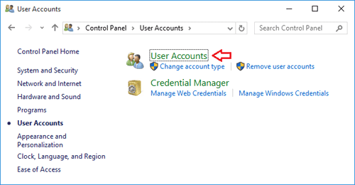 - On the screen that follows, click "User Accounts".