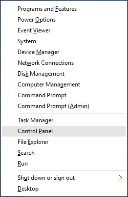 - Press the Windows key + X to open a menu known as the "power user menu" or "quick access menu". Select Control Panel.