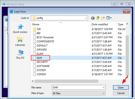 Browse to your Windows partition and locate the SAM file under the /Windows/System32/Config directory, then click on Open.