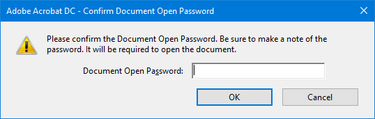 You'll need to re-enter the password for confirmation. Click OK to apply the security changes. Save your PDF file and exit Adobe Acrobat.