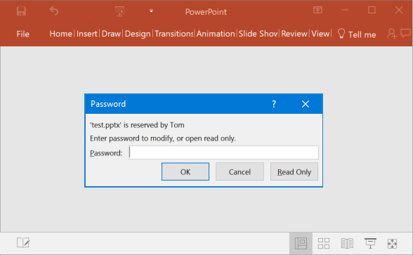 Now, when you open the protected PowerPoint presentation, you'll get a password dialog box shown as below. You can click the Read Only button to view the presentation, or enter the modify password if you need to edit the presentation.