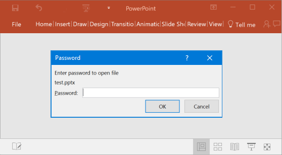 PowerPoint 2016 allows you to use a password to encrypt your presentation, nobody can open it (or edit it) without knowing the original password. Use this option when you want to prevent others from seeing confidential or sensitive slides. Here's how to set a file open password for your PowerPoint presentation: