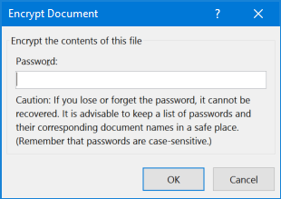 This brings up the Encrypt Document dialog box. Type the password within the provided field, and click OK.