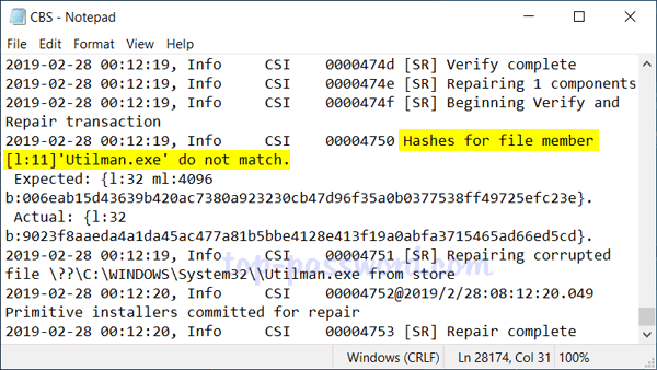All errors found and fixed are recorded in a CBS.log file located in the folder: C:\Windows\Logs\CBS. You can open this file to view the details.