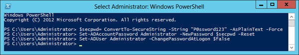 Set-ADAccountPassword Administrator -NewPassword $secpwd -Reset