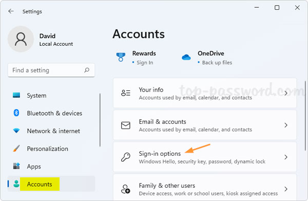 Press the Windows key + I to open up the Settings app. Select the Accounts category and then click the Sign-in options at the right side.