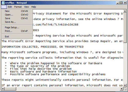 - Notepad will come up with the privacy statement in it. Click on the File menu and then Open.