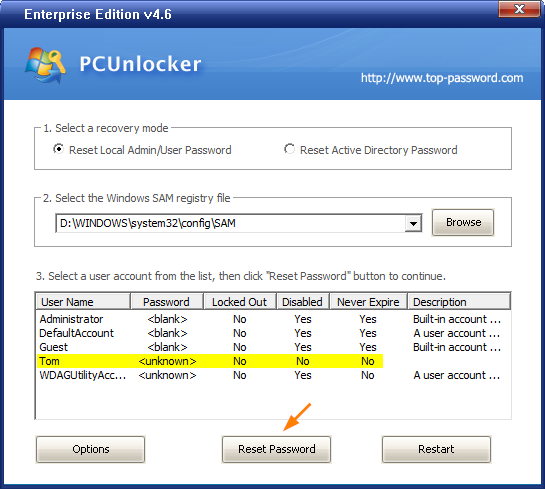 Besides resetting an expired Windows password, you can also use PCUnlocker to unlock a disabled or locked user account in Windows 10, 8, 7, Vista and XP.