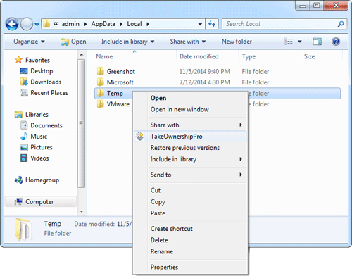 - Easily take ownership through right-clicking the folders or files that you're denied access.